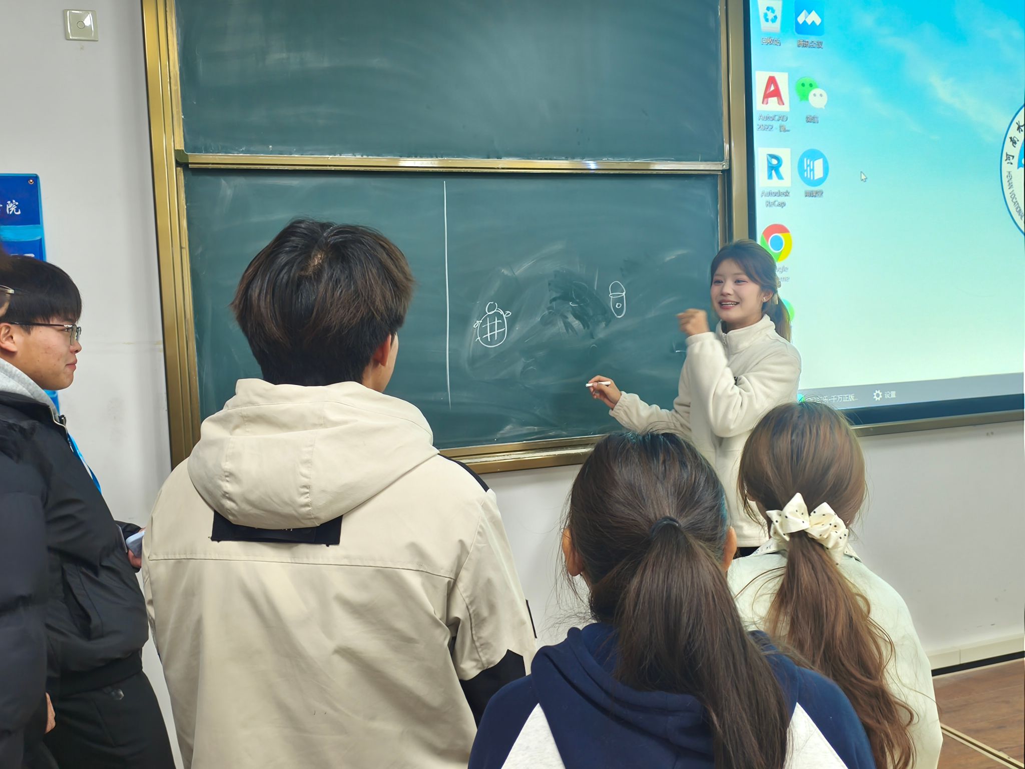 活动以团队竞赛形式进行,巧妙融合成语、诗句、传统习俗等文化元素,引导学生在解谜与创作中感受中华智慧。同学们四人一组,通过表情符号解读、绘画表达与逻辑推理,在紧张活泼的互动中激活思维、展现才智。接着以两两PK形式展开智慧交锋,现场气氛热烈,笑语不断。本次活动将传统文化知识融入益智游戏,不仅丰富了学生的课余生活,也增强了他们对民俗文化的认同与自信。在协作答题与对抗竞技中,同学们进一步锻炼了沟通配合、策略思考与临场应变能力,集体凝聚力得到有效提升。