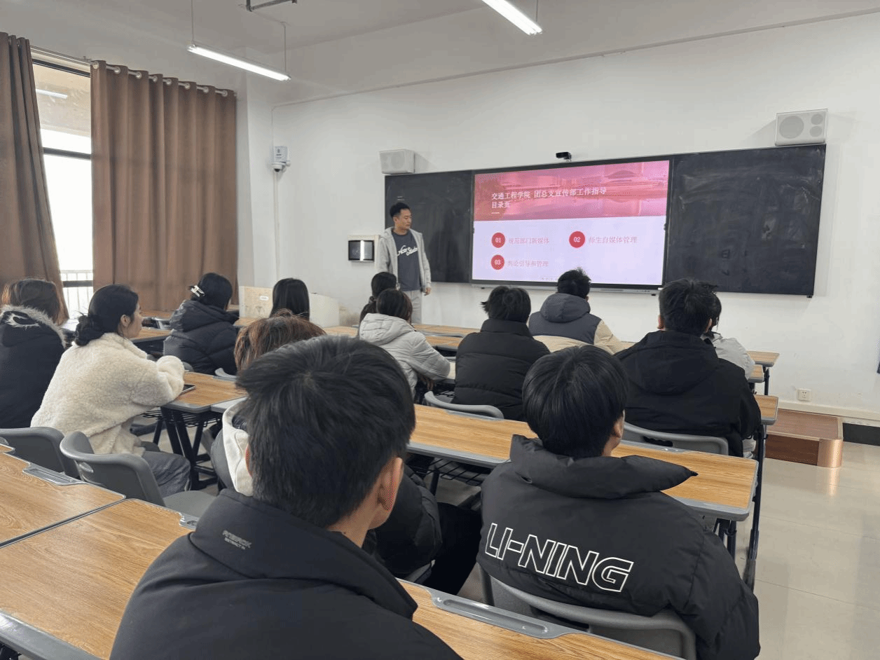 为构建健康文明的校园网络环境,提升学生网络素养,12月17日,交通工程学院在博思楼521组织开展了校园文明网络空间建设专题培训会。本次培训面向学院主要学生骨干、各班宣传委员与网络平台管理员举办,由群团办公室主任丁子龙主持。