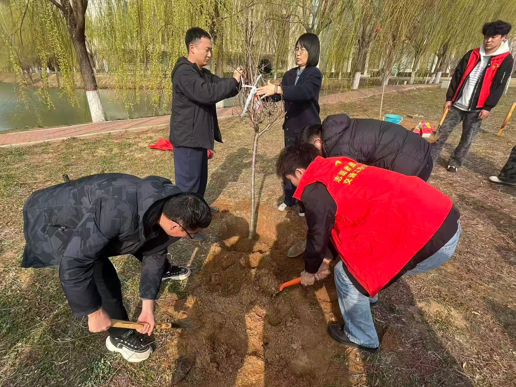 阳春三月,草长莺飞,在第48个植树节来临之际,3月10日,交通工程学院积极响应“绿美校园”建设号召,组织开展了一场以“共植青绿,不负春光”为主题的植树活动。交通工程学院党总支书记杨剑波、副书记荆燕燕、学生群团办公室主任丁子龙带领学生干部代表以实际行动为校园增添新绿,践行生态文明理念。
