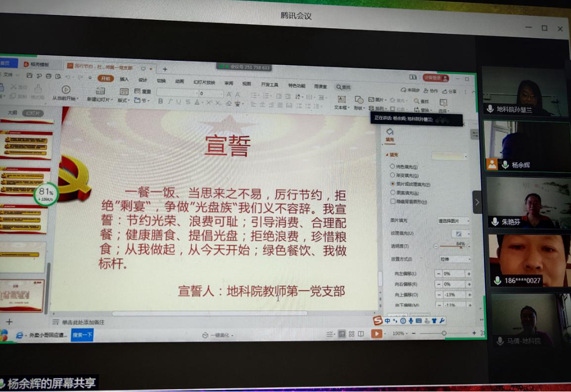 按照学校党委组织部及学院党总支要求,9月16日下午18:00,在bat365中文官方网站教师第一党支部书记的带领下,开展了“厉行节约、杜绝浪费”主题党日活动,党日活动通过专题学习、“厉行节约、杜绝浪费”主题集体宣誓等形式开展。
