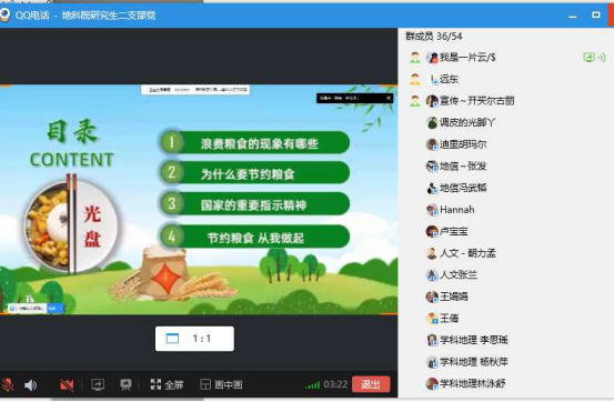 2020年9月21日,bat365中文官方网站研究生第二党支部组织开展“厉行节约,反对浪费”主题党日活动,活动在线上召开,研究生第二党支部全体党员和积极分子参与活动。